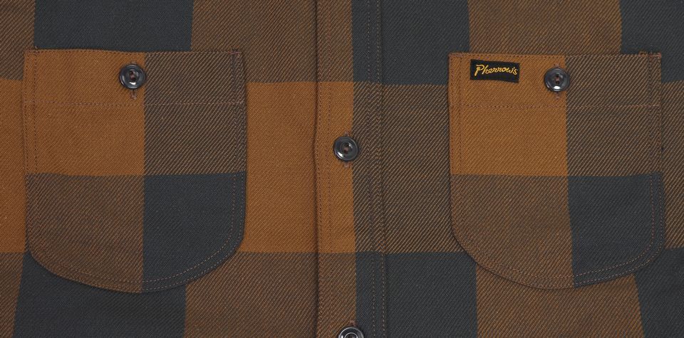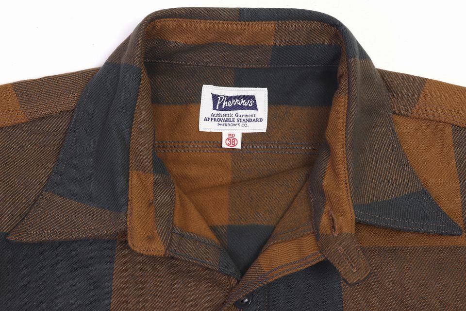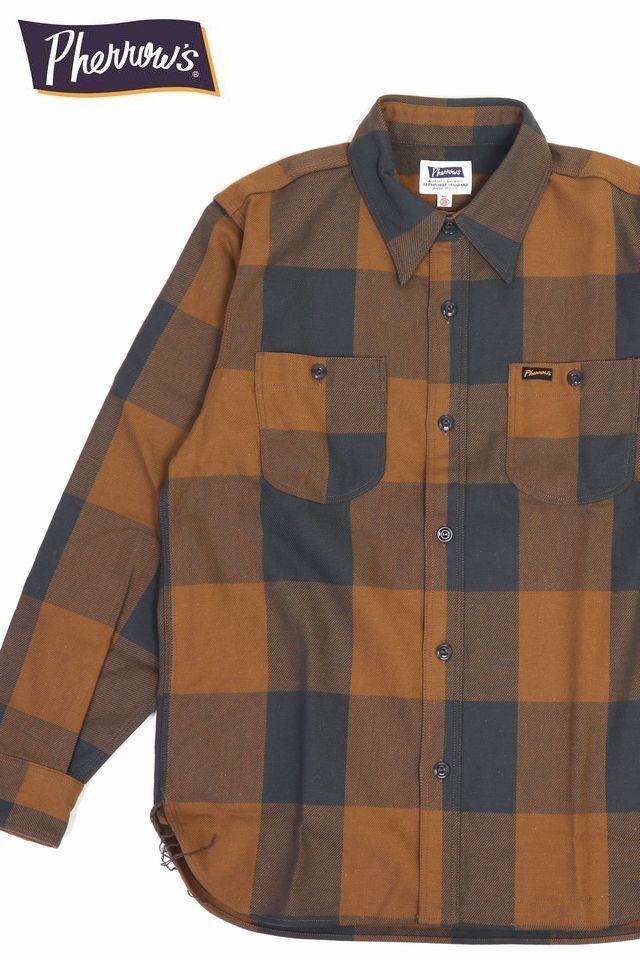 『Pherrow's ヘビーウェイト ネルシャツ【ブラック×オレンジ】』