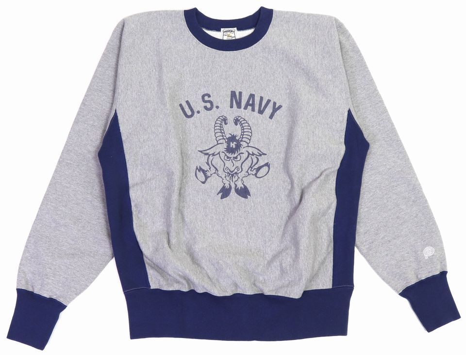 「Pherrow's/フェローズ」ツートーンプリントヘビーウェイトスウェット【杢グレー×ネイビー】