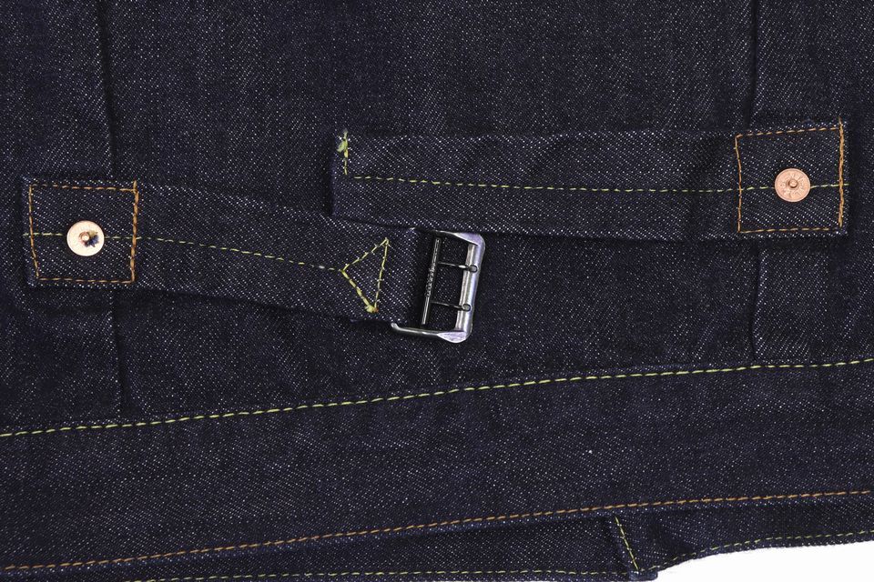 本モデルの為に作り込んだデニムに特注のパーツを使用。
